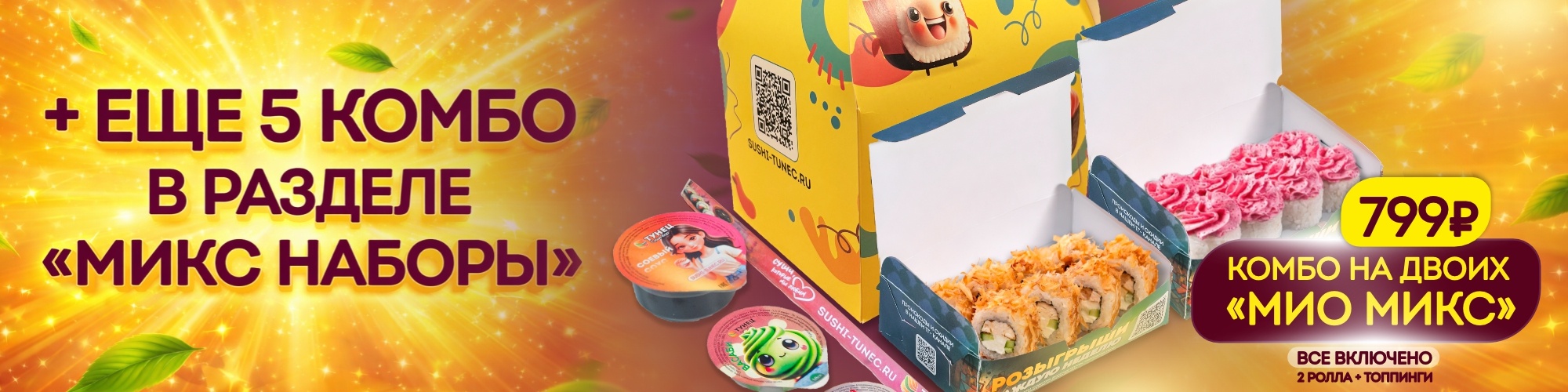 Фэнтези ролл 1/2,фэнетези запеченный 1/2, калифорния в кунжуте 1/2, калифорния классика 1/2, филадельфия темпура 1/2, филадельфия темпура запеченная 1/2, маки с лососем и авокадо 1/2, маки с тунцом 1/2.